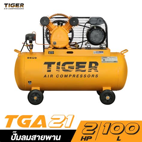 ปั๊มลมสายพาน tiger tga21-100m 1hp มอเตอร์ 2hp 220v. ถัง ...