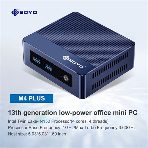 Equipped with the Intel Twin Lake N150 processor it meets the needs of most everyday tasks 16GB RAM and 512GB SSD Supports 4K triple screen display   The SOYO M4 PLUS Mini PC is a highly compact device measuring approximately 12 7 cm x 12 7 cm x 4 3 cm 5 03 x 5 03 x 1 69 inches and weighing around 280g   Equipped with the Intel Twin Lake N150 processor it meets the needs of most everyday tasks 16GB RAM and 512GB SSD Supports 4K triple screen display   Hi guys Anyone here have this miniPC Please take a look on your bios i ve very little options comparing to GMKtec G3 it look poorly as  The SOYO M4 PLUS Mini PC is a highly compact device measuring approximately 12 7 cm x 12 7 cm x 4 3 cm 5 03 x 5 03 x 1 69 inches and weighing around 280g
